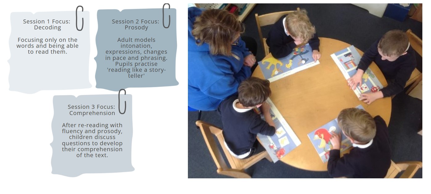 - Continued implementation of reading fluency practise sessions using the three-part-read model throughout KS2 for those children identified as requiring continued, supported fluency practice.